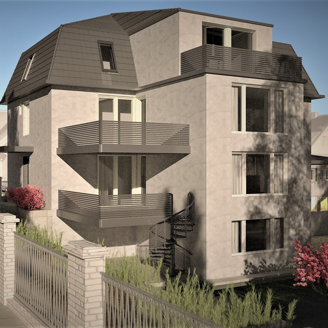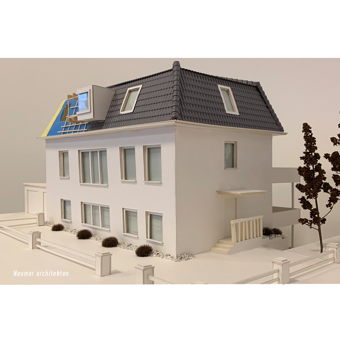 Für unsere Bauherren wurde ein Modell sowohl in klassischer Modellbauweise aus Pappe als auch in 3D-Visualisierung erstellt. Die Nutzung verschiedener analoger und digitaler Medien zur Vermittlung des Bauvorhabens in der Planungsphase liegt uns besonders am Herzen.