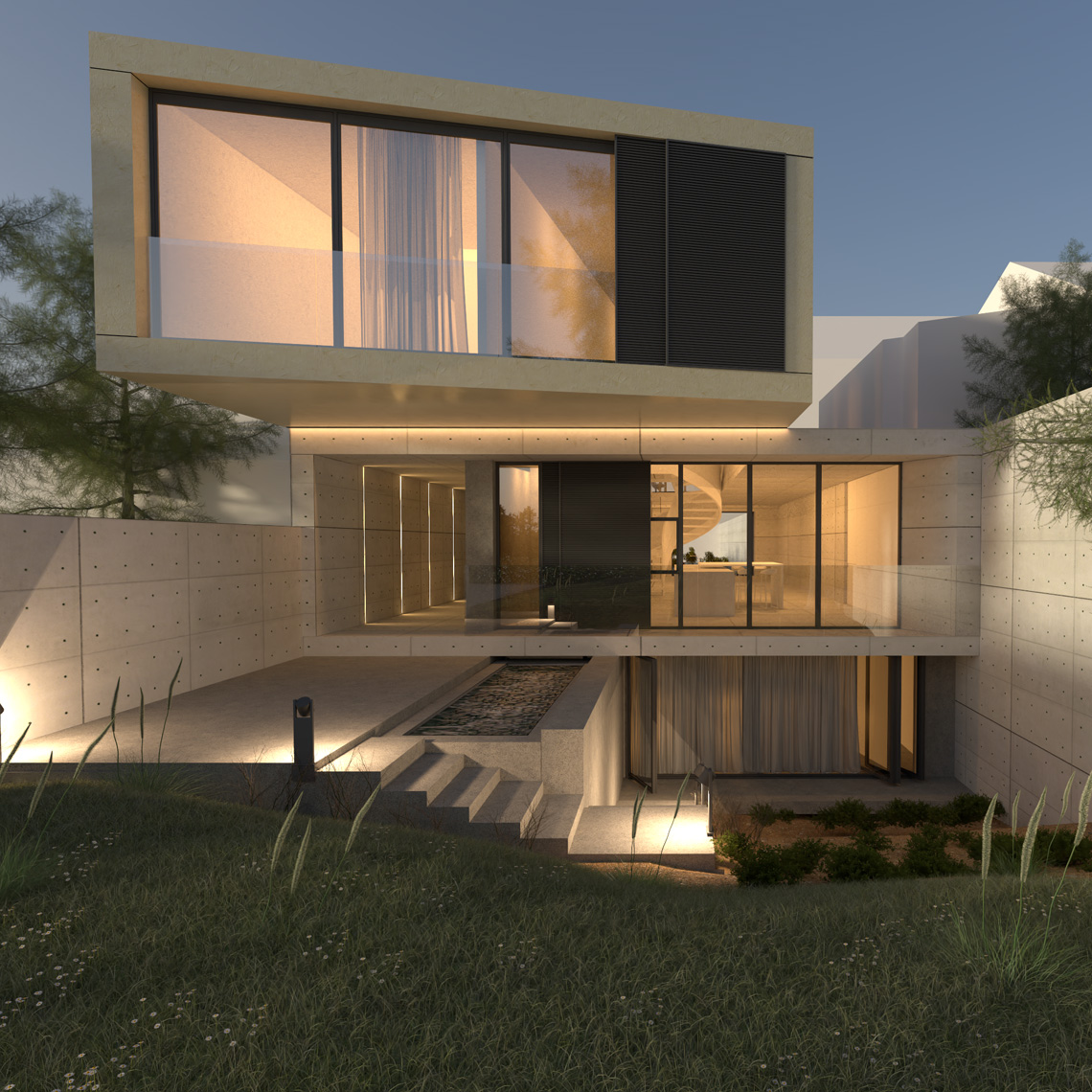 Ursprünglich war ein asiatisch inspirierter Garten mit Tiefhof, Wasserbecken und Pool vorgesehen. Auch wenn diese Elemente später entfallen sind, bleibt das Thema Lichtgestaltung prägend – umgesetzt in Zusammenarbeit mit einer erfahrenen Lichtplanerin.
