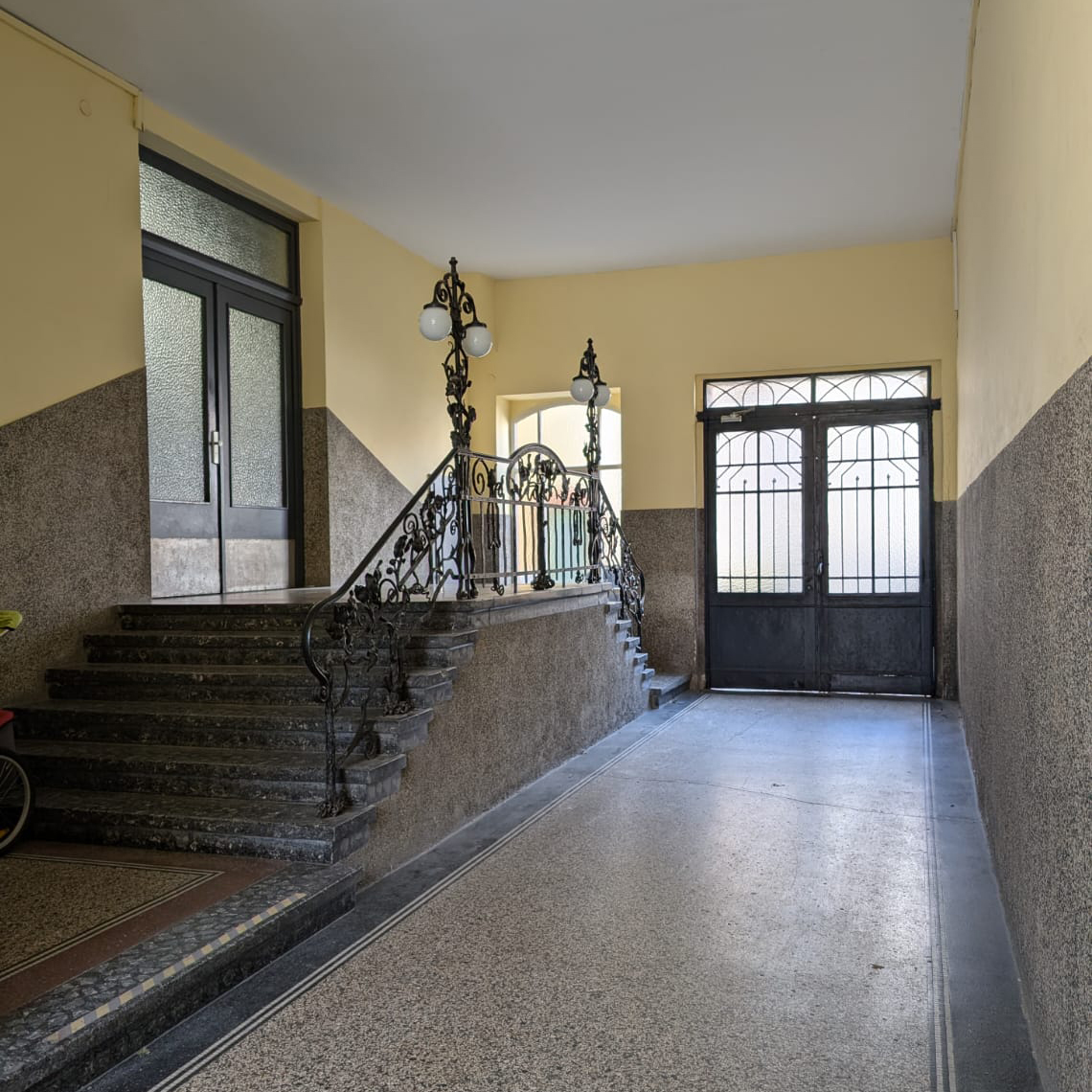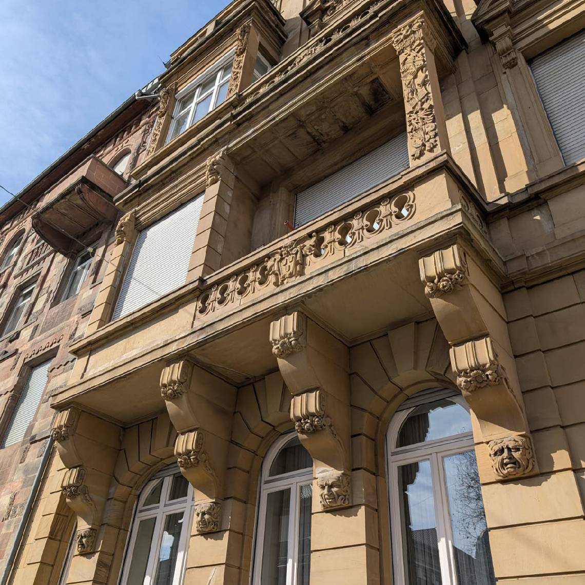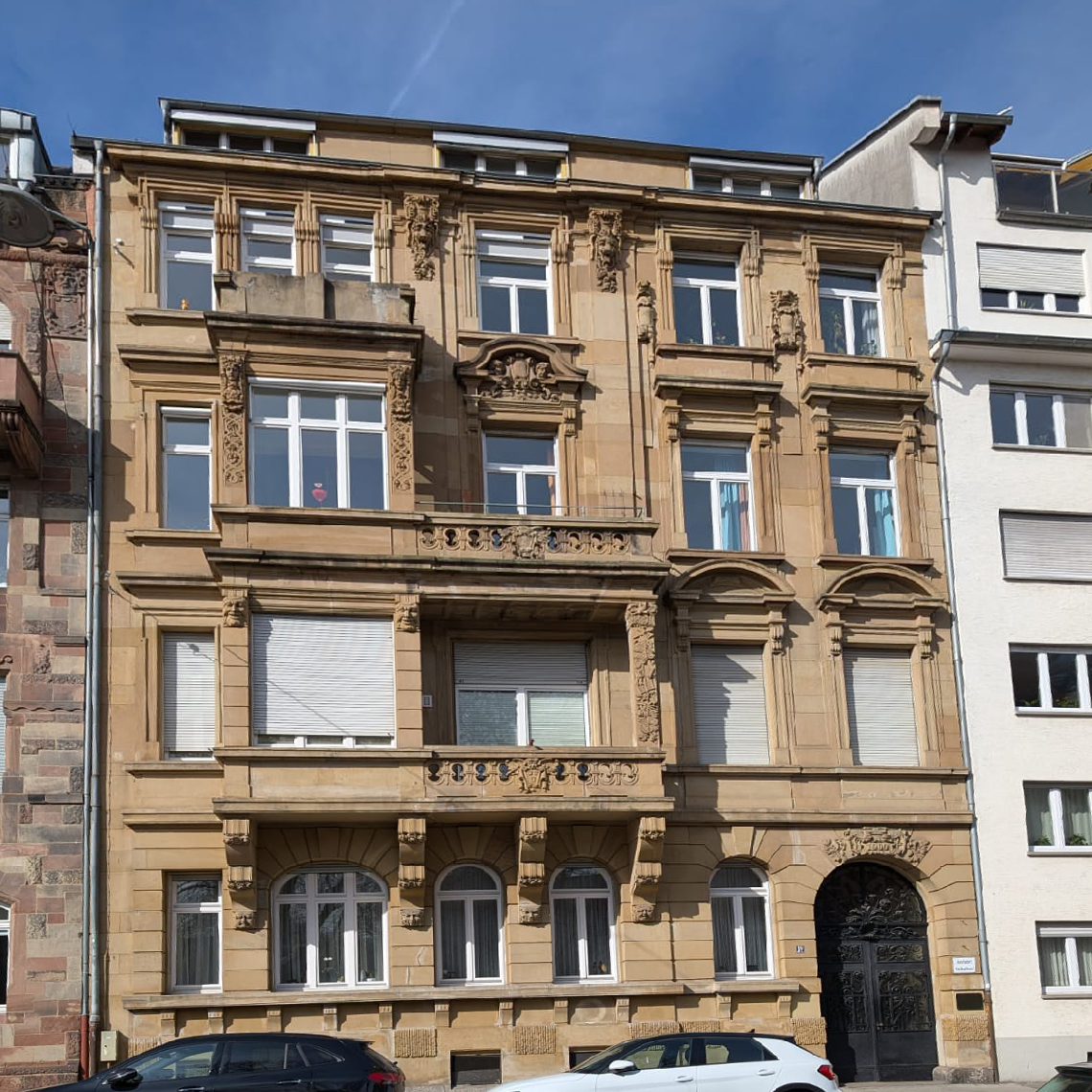 Der schöne Altbau liegt in der Stresemannstraße in der Mannheimer Oststadt. Die Souterrainwohnung liegt im Hinterhof des Baus. Durch die großen Fenster zum Hof ist die Wohnung trotz des Souterrains, schön hell.
